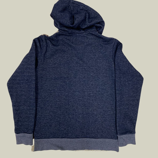 Vtg Desigual Hooded Knit-Panel Zip Sweatshirt – Blue & Earth Tones – Size M