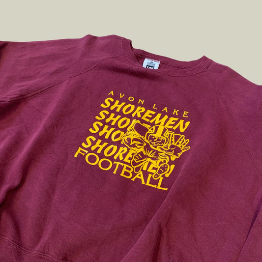 Vintage 90s Lee USA Sweatshirt – Avon Lake Shoremen Football – Maroon & Yellow Graphic – Made in USA