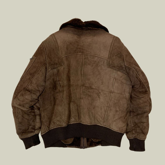 Vintage Aviator Shearling Jacket — Brown Leather & White Fur (M)