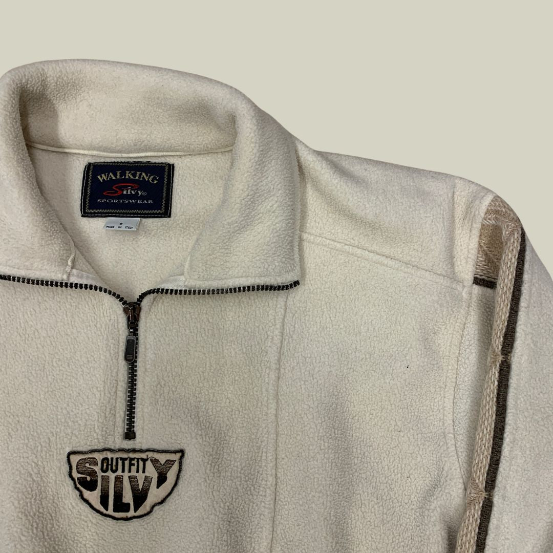 Vintage White Half-Zip Fleece with Embroidered Details – Silvy Outfit