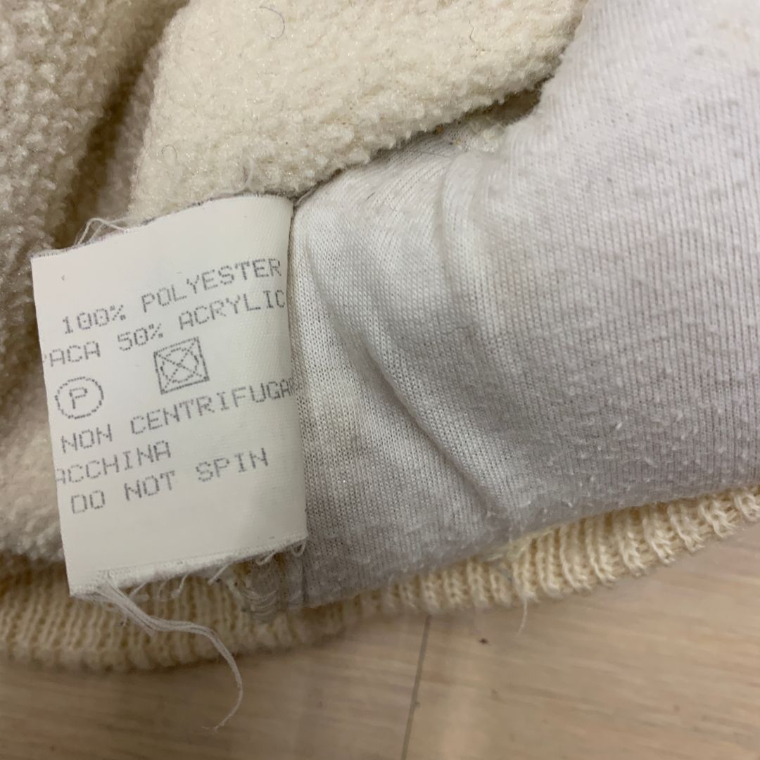 Fleece vintage color panna dalla linea morbida, caratterizzato da dettagli ricamati e inserti lavorati a maglia sulle maniche e vicino alle tasche. Chiusura half-zip, patch frontale “Silvy Outfit” e due tasche laterali con zip. Un capo dallo stile sportivo e rétro, perfetto per aggiungere un tocco anni ’90 al tuo guardaroba casual.